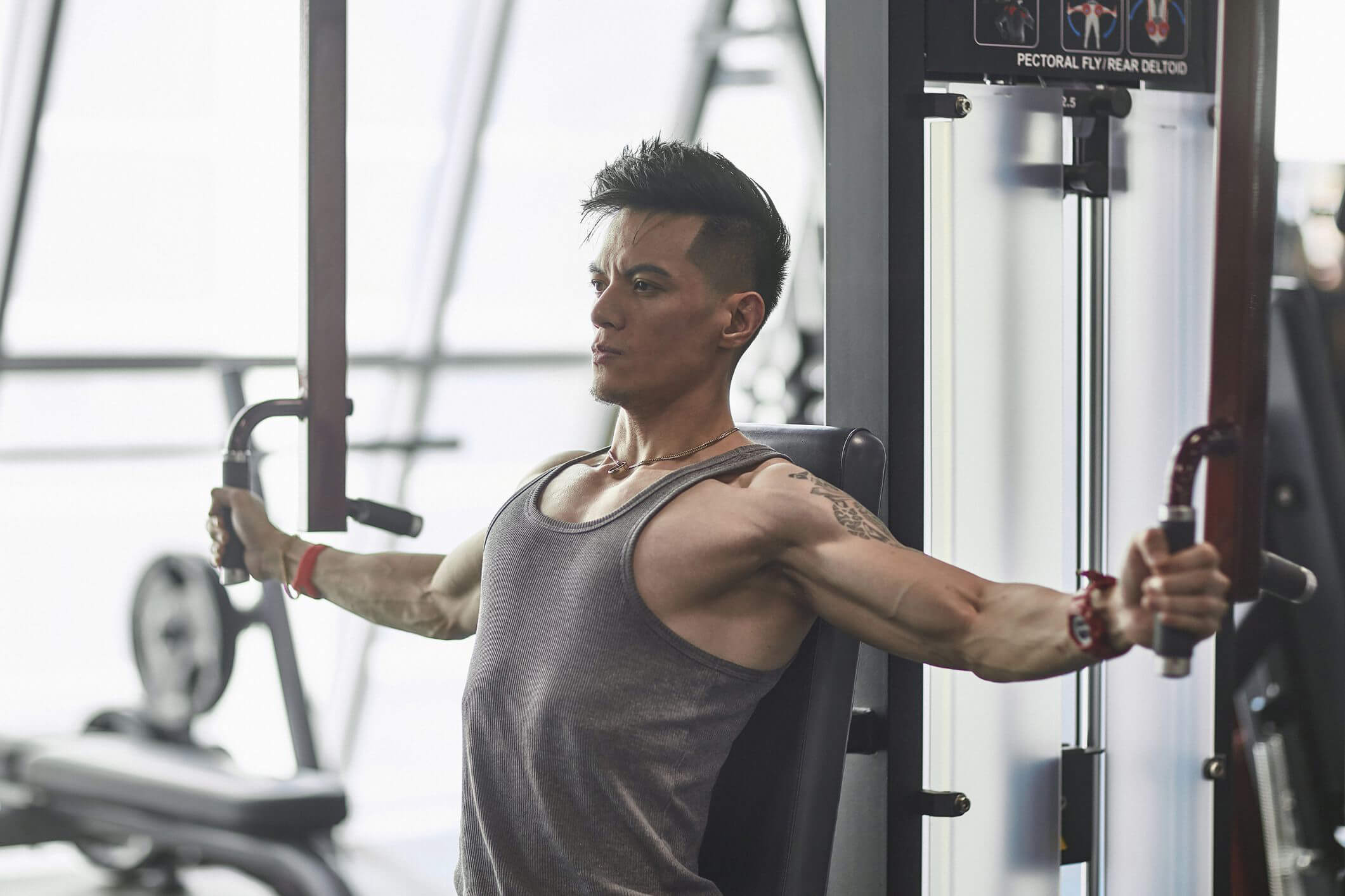 먼저 올바른 위치에 들어가십시오. 무릎이 구부러지고 발이 바닥에 평평하게 바닥에 앉으십시오. 무릎을 안쪽으로 약간 끌어 내고 손잡이를 잡습니다.Pec Fly Machine손바닥이 아래로 향하게됩니다. 상체를 똑바로 세우고 목과 머리를 편안하게하십시오. 이 자세는 균형과 안정성을 유지하는 데 도움이됩니다.